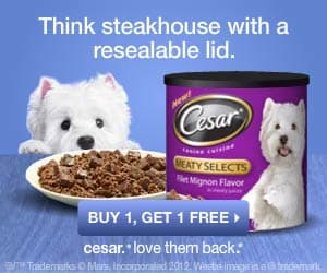 Click on the banner and print a coupon for buy one get one free coupon from cesar canine cuisine.